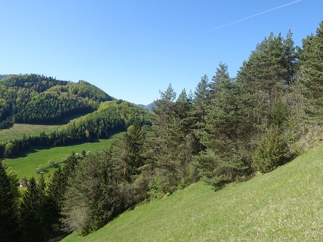 Nach einem ausgezeichneten Frühstück bei Frau Wimmer machte ich mich gegen 08:00 Uhr wieder auf den Weg. Mein Quartier lag etwas abseits des 04er Weges. Um wieder auf die Originalroute zu gelangen, hätte ich erneut auf den Plattenberg aufsteigen müssen – das war mir allerdings zu mühsam. Stattdessen entschied ich mich für eine alternative Route und ging weiter bergab in Richtung der Ortschaft Laussa. Ich durchquerte den Ort und folgte anschließend noch ein Stück der Hauptstraße bis zum Ortsteil Grüntal.