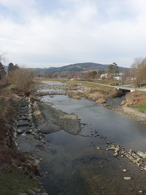 Im November 2025 war ich die sogenannte Nordroute des 04er Weges vom Kahlenberg bis ins Traisental nach Wilhelmsburg gewandert. Genau in diesem Wilhelmsburg setzte ich am 9. März 2026 meine Wanderung am Voralpenweg 04 fort. Zuerst holte ich mir meinen Stempel im Rathaus von Wilhelmsburg, danach erledigte ich noch einen schnellen Einkauf beim Spar. Schließlich folgte ich dem Weg mit der Nummer 655. Dieser führte mich entlang der Traisen.