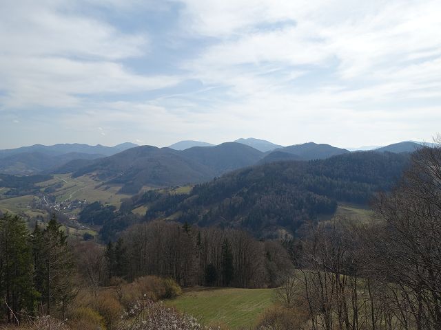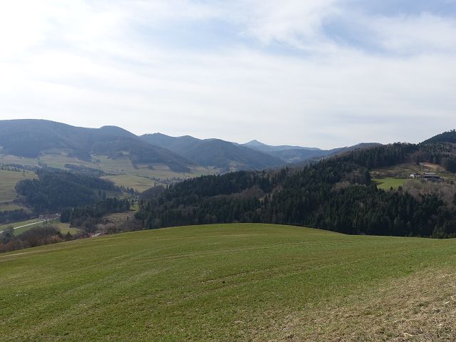 Der Anstieg war durchaus fordernd und mündete schließlich wieder in einen Fahrweg. Ein kurzes Stück ging es gemütlich dahin. Der Weg führte an einigen Gehöften vorbei, anschließend über ein Wiesenstück, bevor der 04er Weg erneut in einen Fahrweg einmündete. Dieser Höhenweg verlief einige Zeit moderat dahin, dann bog der Weg nach links ab und ein Feldweg führte mich hinunter zur Meiselhöhe.