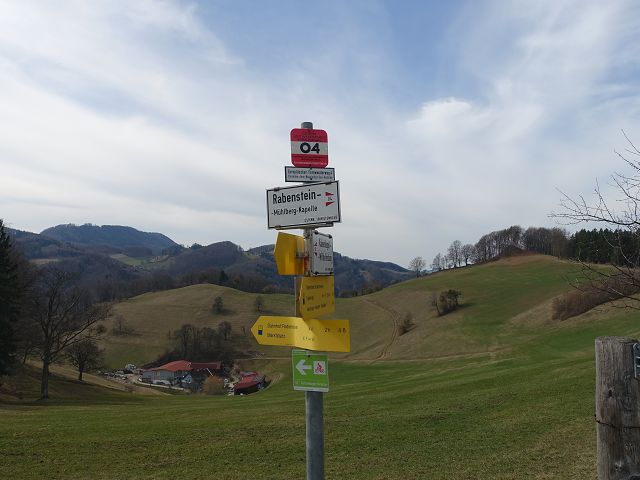 Etappe: Wilhelmsburg—Meiselhöhe—Kaiserkogelhütte—Rabenstein a.d. Pielach—Tradigist/Warth, reine Gehzeit 06:24Stunden für 24Kilometer, Höhenmeter im Anstieg 590, Höhenmeter im Abstieg 535, Wegnummer 404, 604, 652, 655